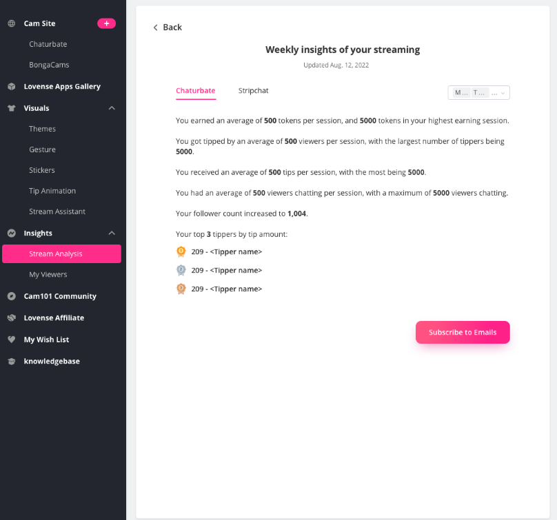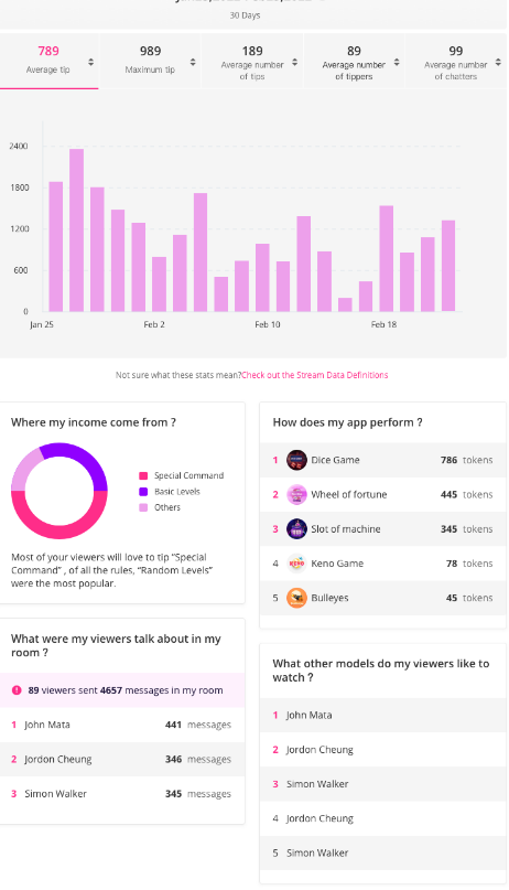 En esta nueva versión, podrás consultar toda la información relativa a tus transmisiones, desde el número de tokens recibidos a las aplicaciones que generan mejor resultado, cuántos seguidores interactuaron contigo o qué otros modelos siguen.