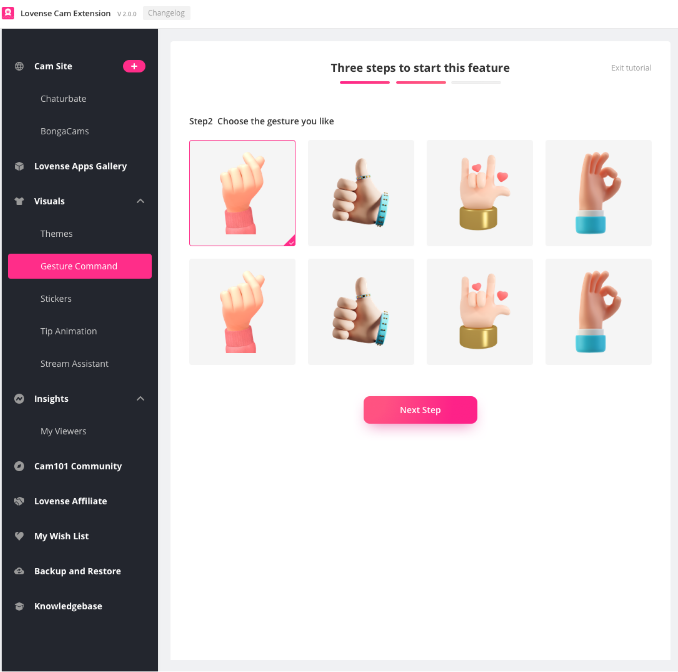 Con esta opción, puedes elegir un gesto que quieras hacer durante tu transmisión y al hacerlo, la extensión de cámara enviará una animación de tu elección a la transmisión, un elemento sorpresa que hará las delicias de tus fans, ¿no es genial?
