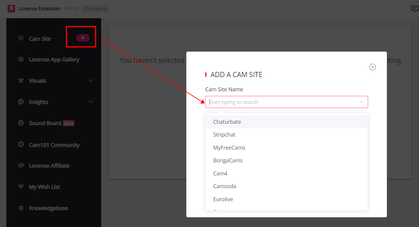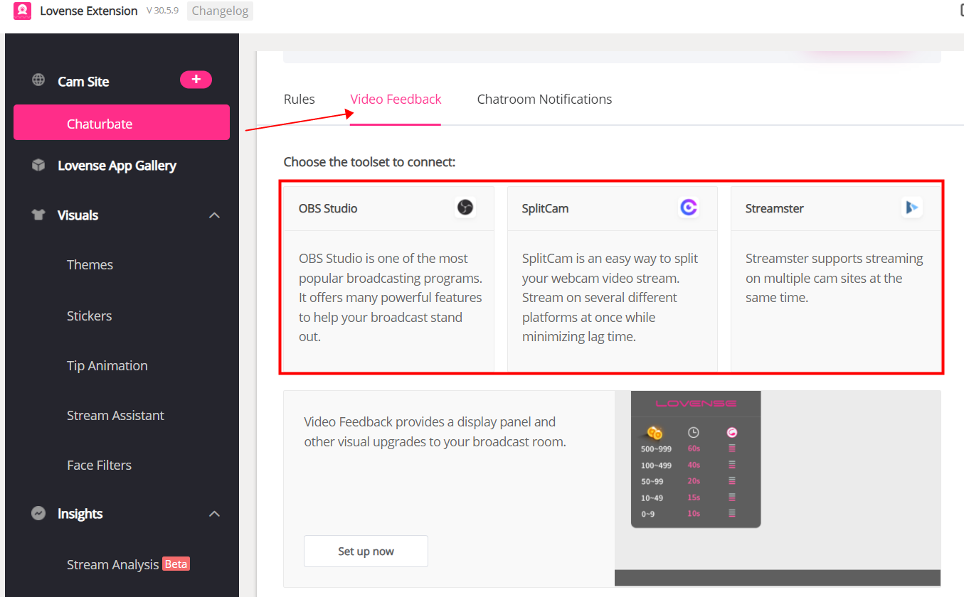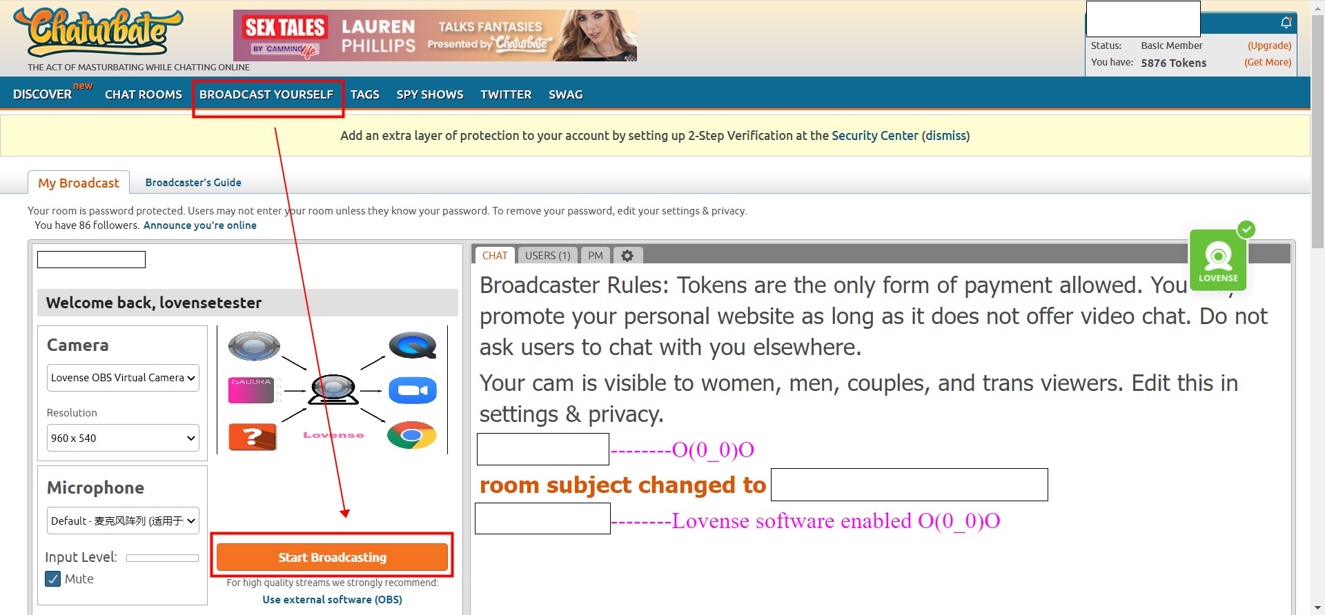 5. Log in to your cam site and start your stream. The Lovense widget will show up on your broadcasting page. You can use it to manage your stream.