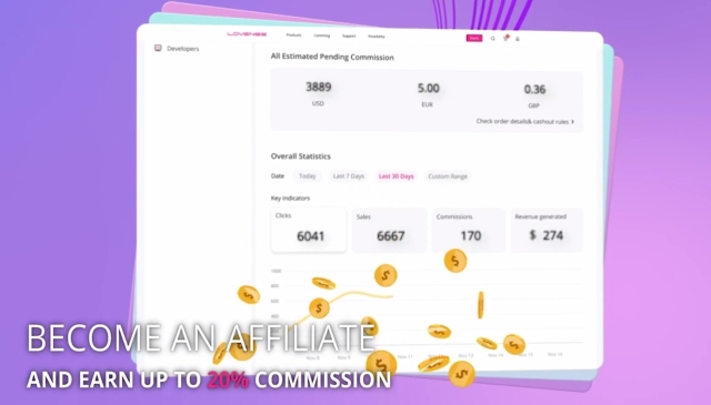 Once signed up the lovense affiliate program, you can easily track your stats, commissions, payment history, and traffic logs via your dashboard.