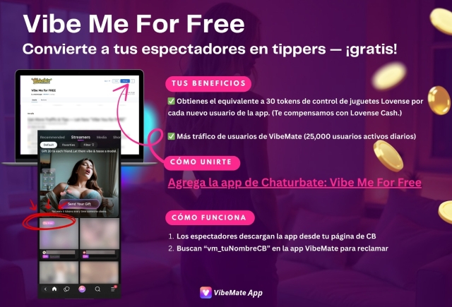 💃 Activa la campaña "Vibe Me for Free" en tu extensión de Lovense Cam, y convierte a los espectadores en seguidores que dan propina. 📢 ¡Ya disponible para streamers de Chaturbate y Stripchat! 🥰 No te lo pierdas 👉🏻