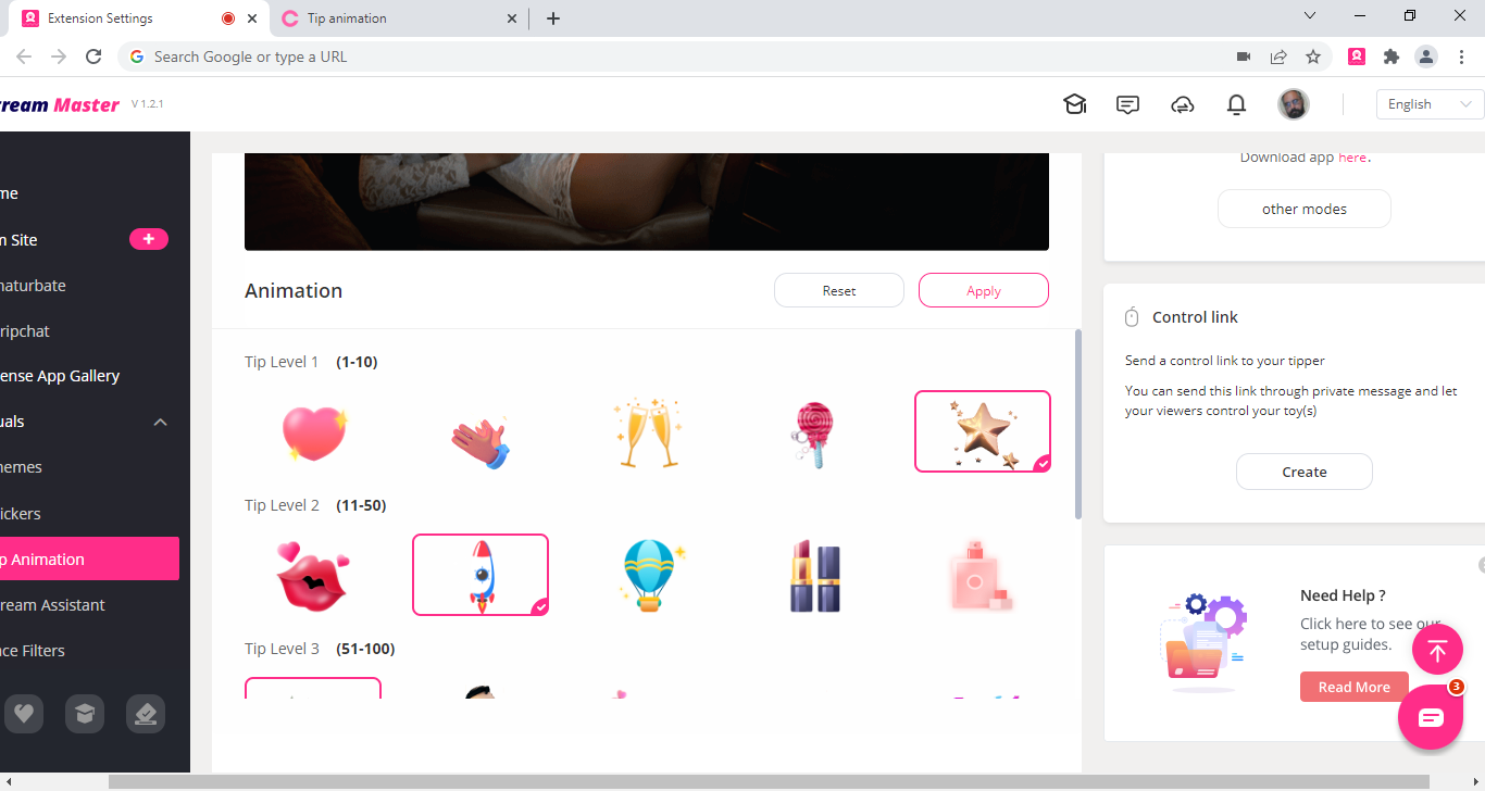 You can add your animations like it shows in the picture, it is pretty simple and it supports multiple formats. Then, simply drag the animation to a tip level. Adjust the token range and dont forget to save it before moving to another section!
