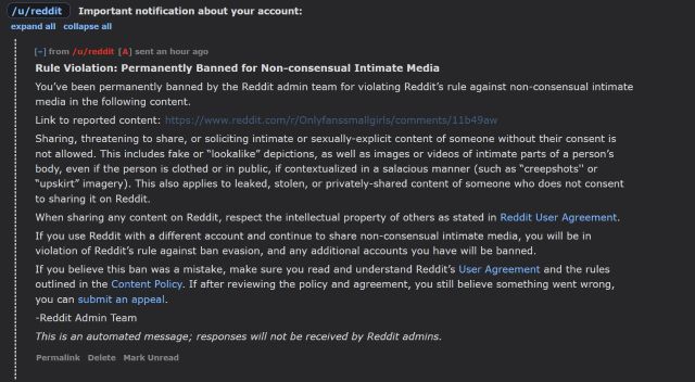 #Help/Advice Reddit "Permanently Banned for Non-consensual Intimate Media"