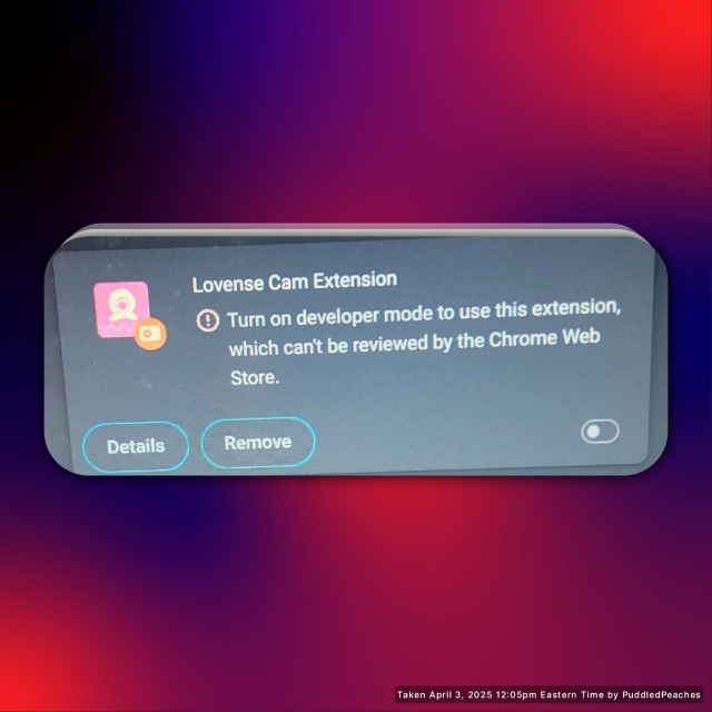 Good Evening and Happy New Years Everyone! Its been awhile since I've frequented the Lovense Community and visit now in hopes of obtaining information and qualified solutions. If you can direct your attention to the attached picture. What does that say for the extesion when not even Google trusts it? Now Google is cleaning house at the Chrome Web Store, does that explain why the Lovense Extension is no longer offered on the store and only from the Lovense website? And does Lovense still adamently push that Developer Mode remain on after installing and during Live Streaming? And with Lovense new Terms and Policies implemented this New Year, is Lovense safeguarding any new potential lawsuits from arising?
