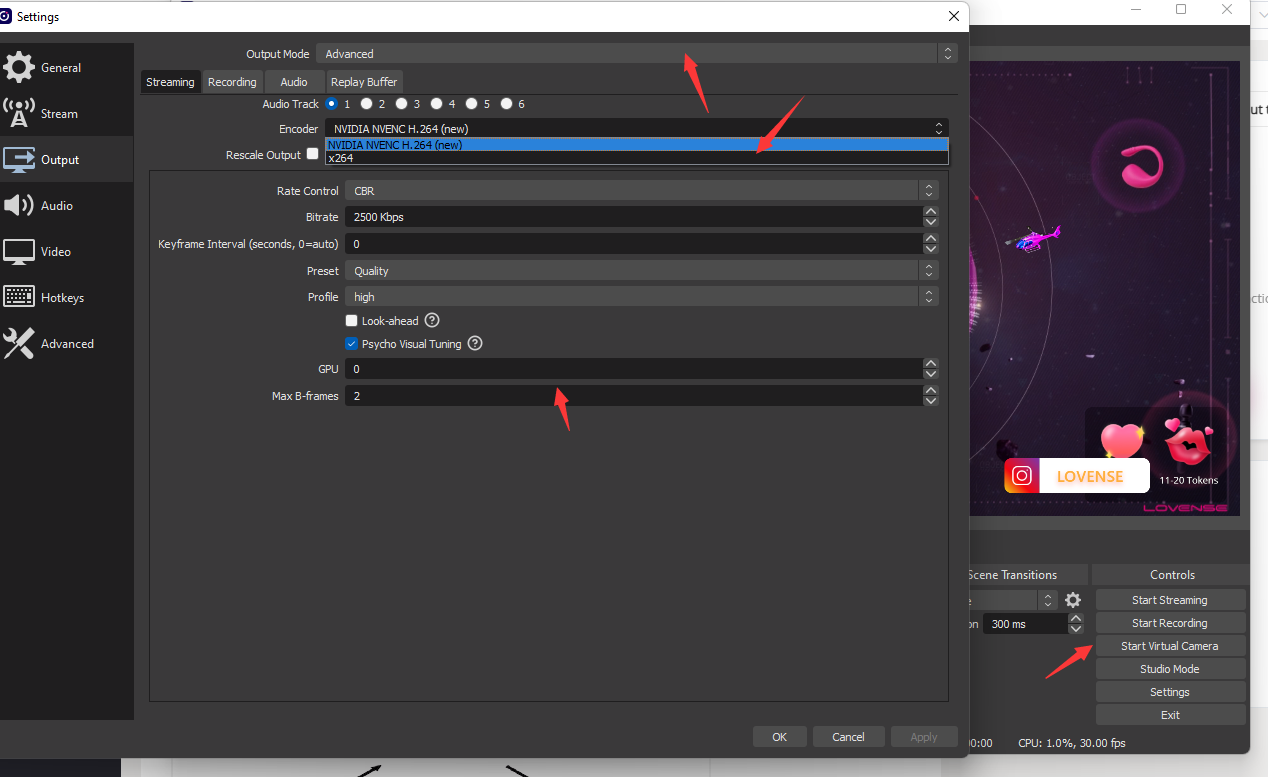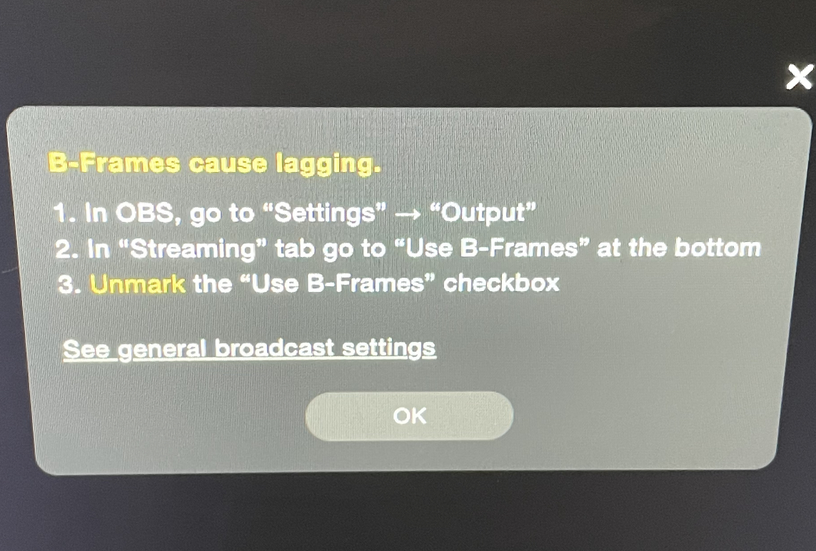 SM obs was working fine last night but then it says that i need to ncheck the use b frames check box but i cant find it in settings