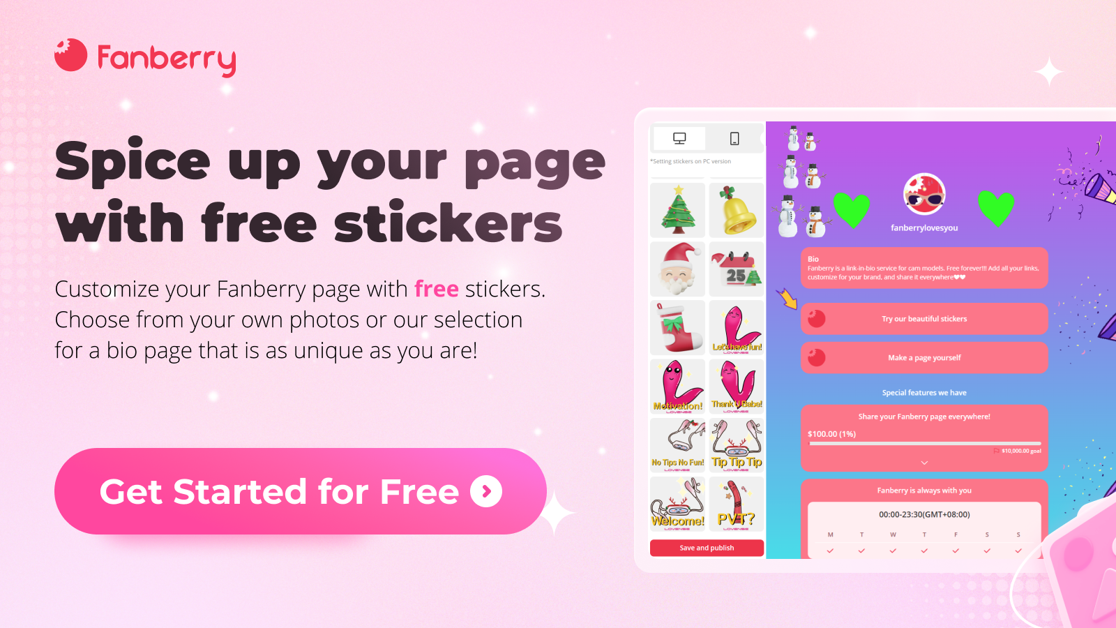 A brand-new feature has hit the scene on Fanberry by Lovense – stickers! Customize your page with fun & flirty stickers to show off your personality and draw attention to certain links. Check out what your page can look like: https://fanberrylovesyou.fanberry.com/ And make your own stunning page on Fanberry now!