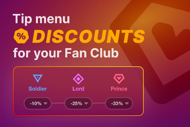 - You choose whether you want to offer a discount to Soldiers, Lords, or Princes. - You choose the amount of the discounts. - The active discounts apply to all of your Tip menu presets.